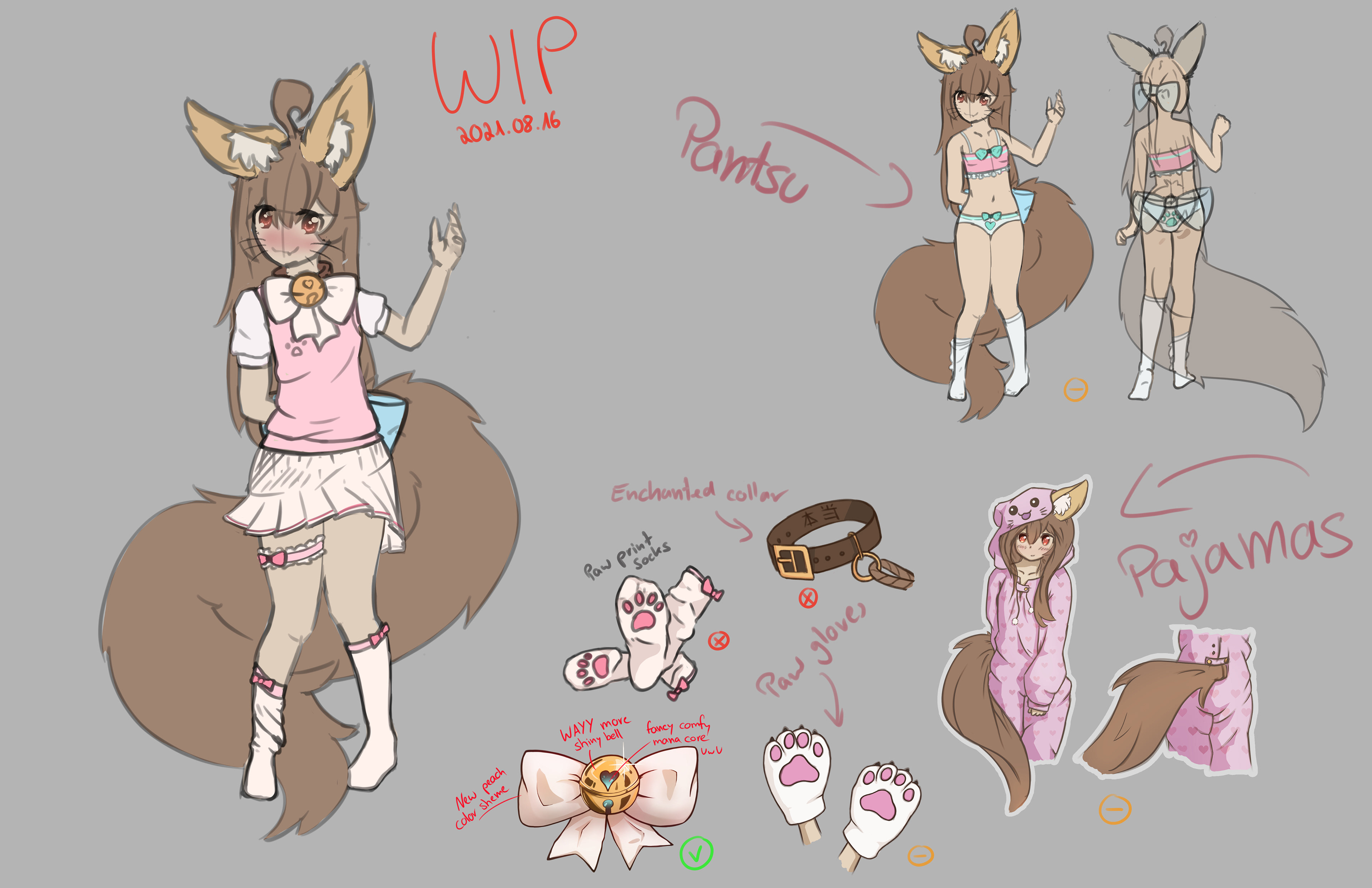 What was the next thing ... oh right, my mana core! The slight blue light in the bell of my collar is a mana core. If passively heals me. Simultaneously it has a small calming effect for me and everyone within a certain radius. It is amplified by my magic, so when I am actively using a spell its glow becomes stronger. Actually a cool feature we found on an old street vendors portfolio. Was a bit pricy ... but worth every silver so far! ^-^